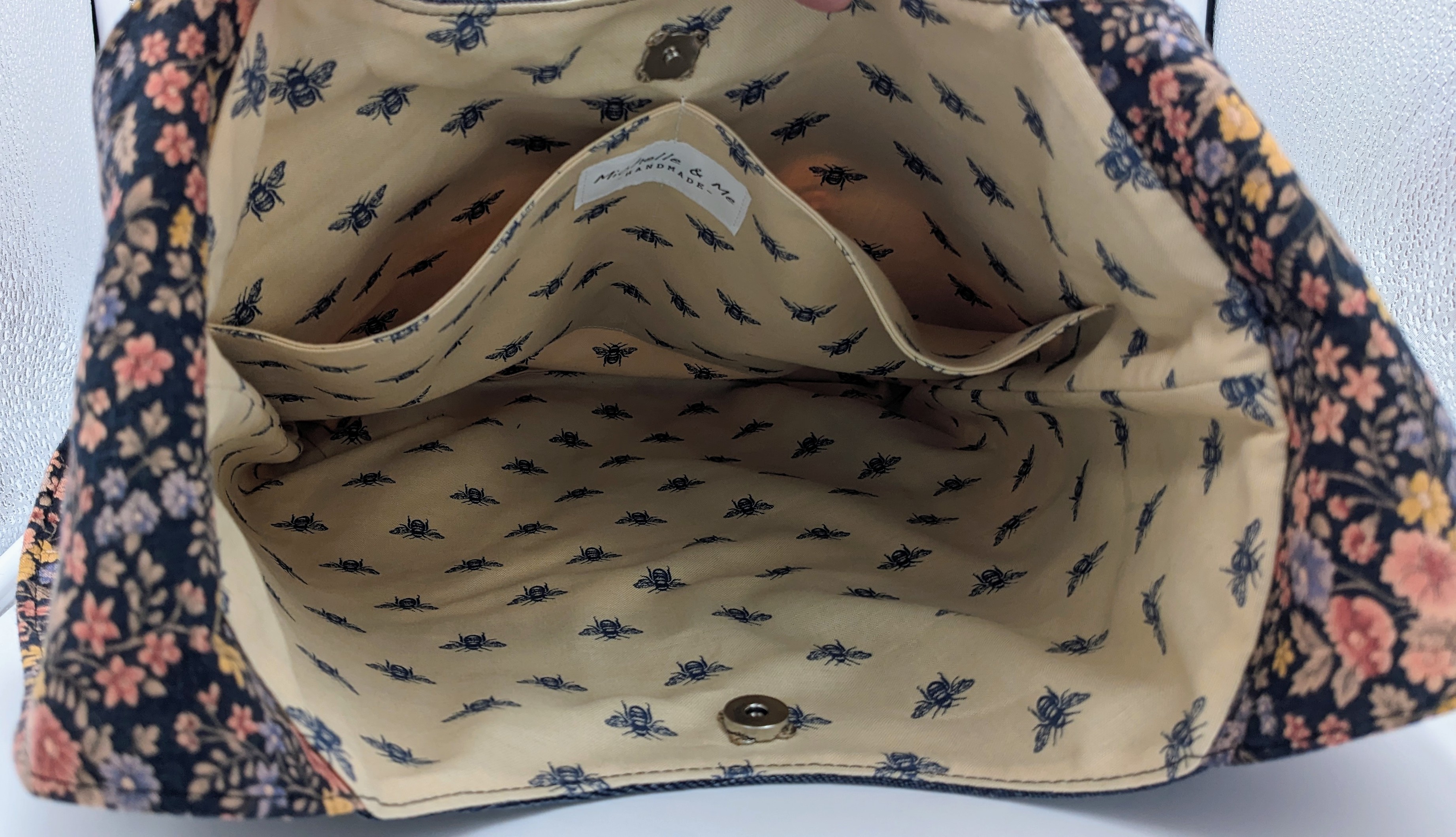 Includes an internal divided pocket for personal items, phone, or keys. Tiny D-ring on the side for adding a personal bag charm or anything else handy.
