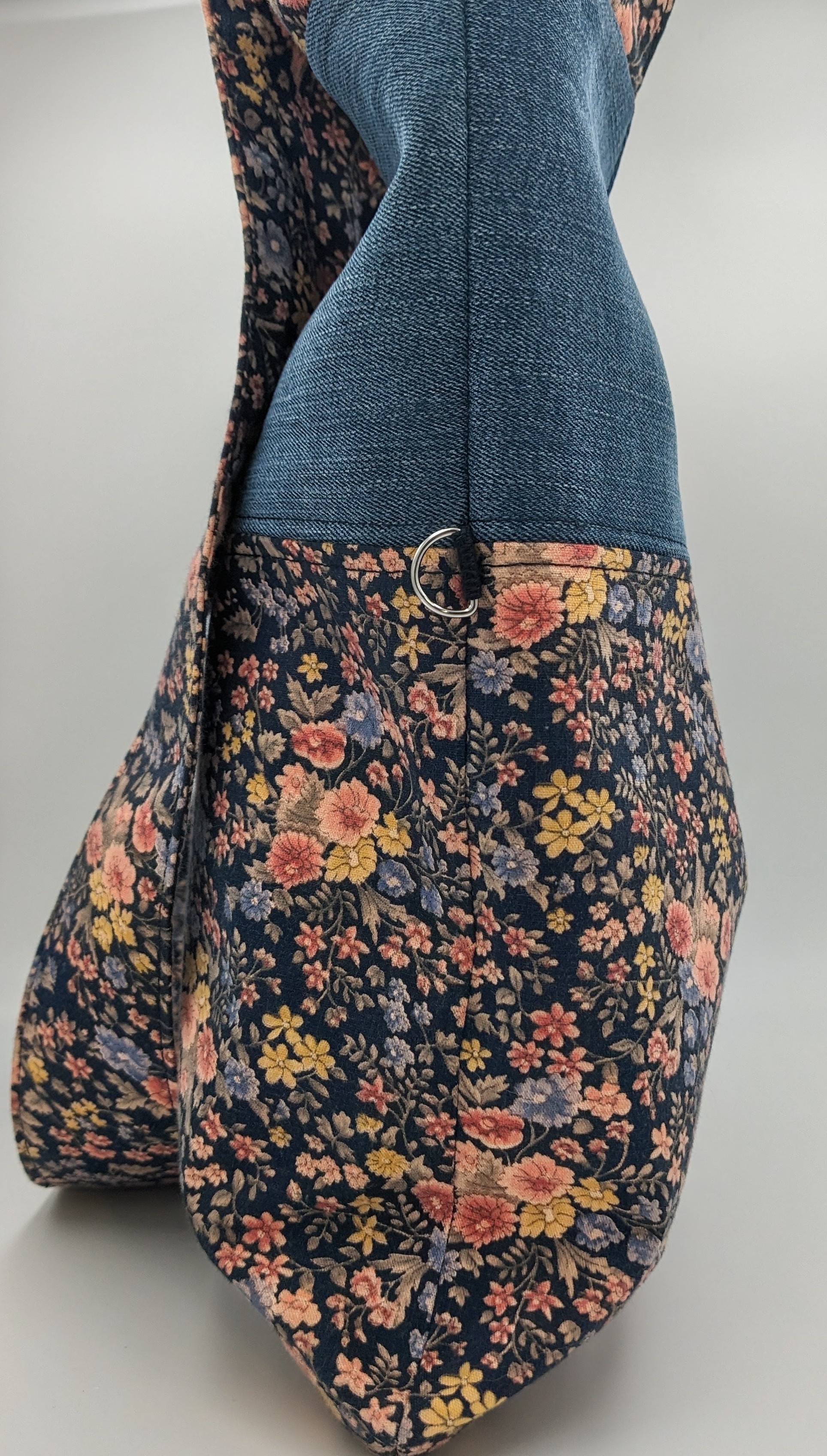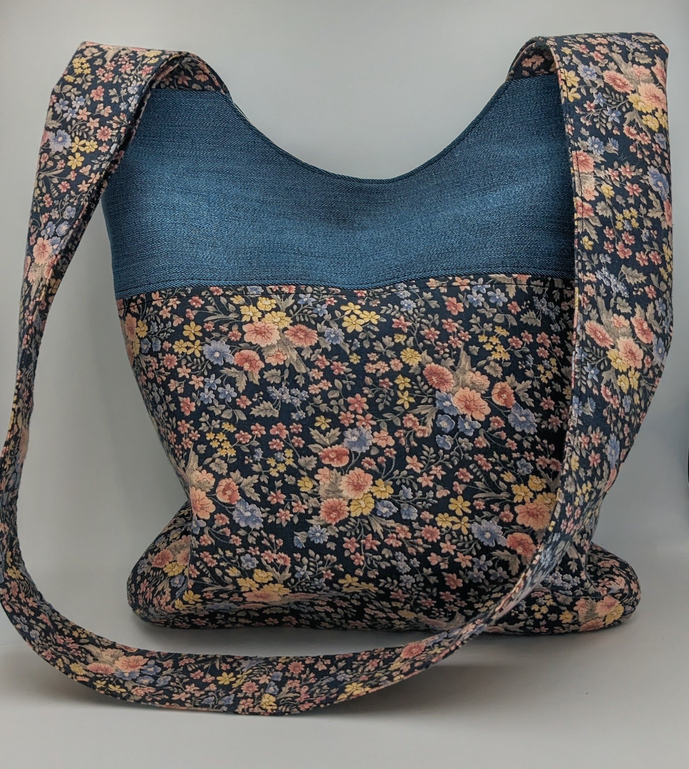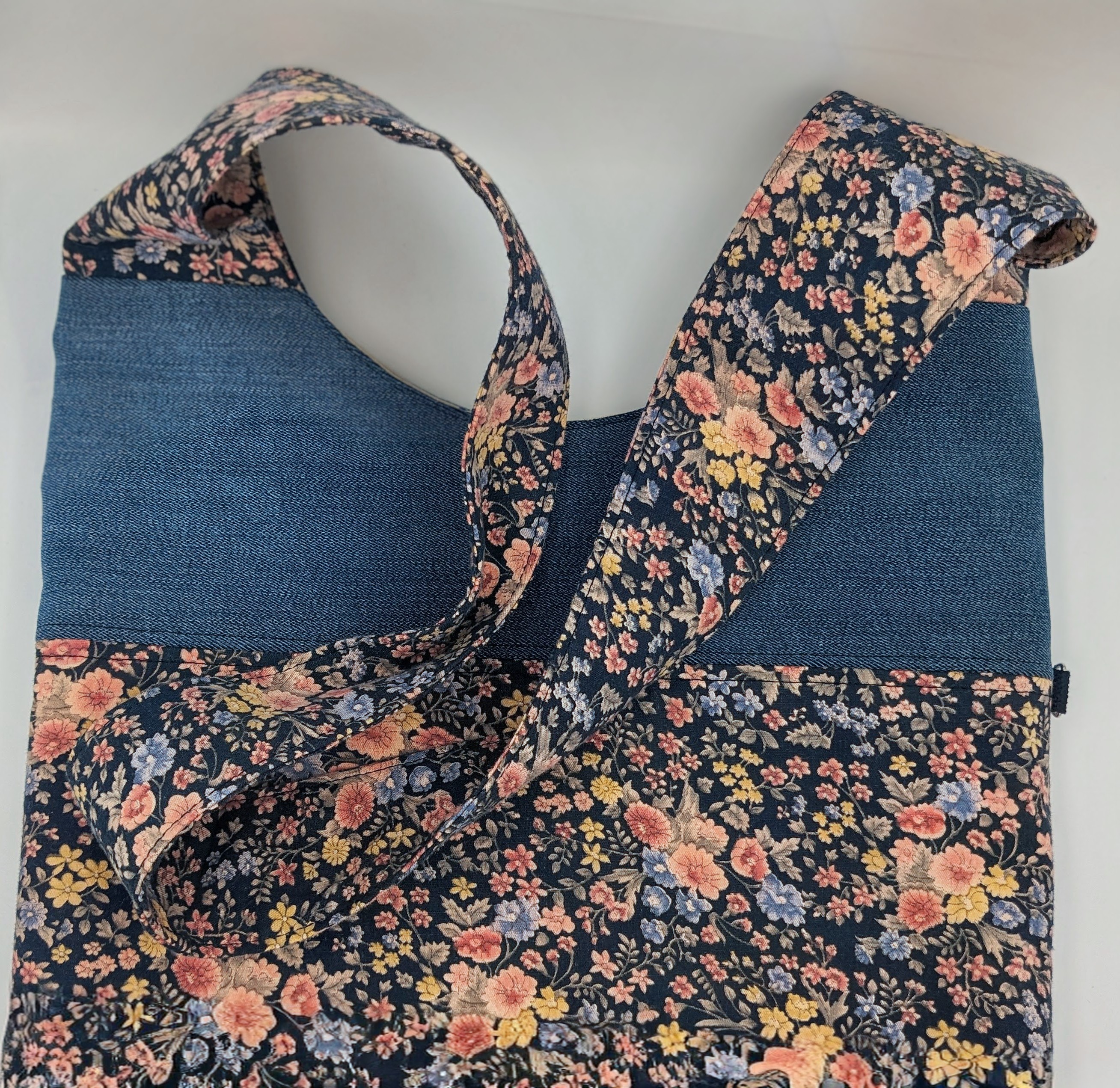 This bag is constructed using old jeans and vintage cotton fabrics aiding in sustainable fashion.