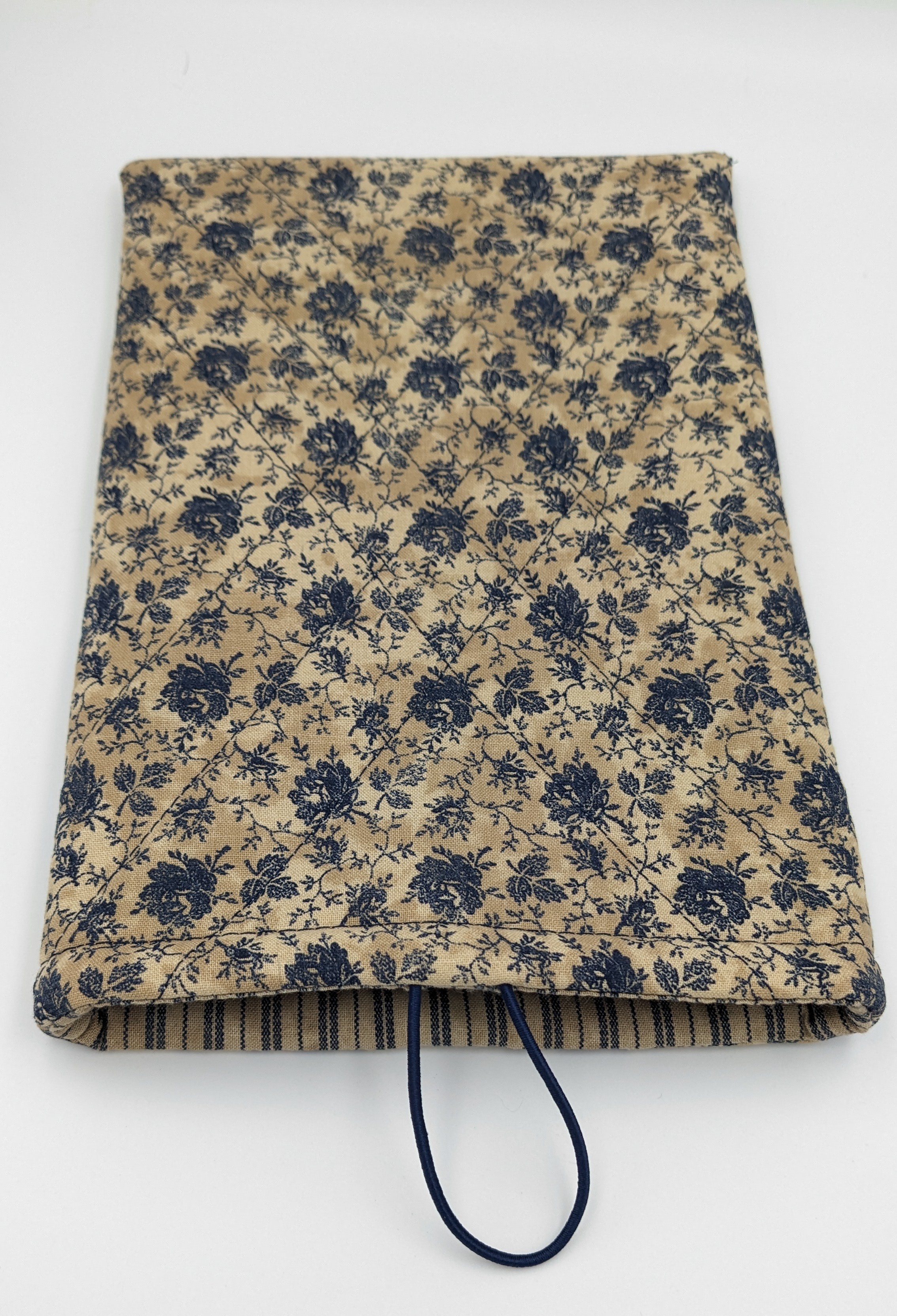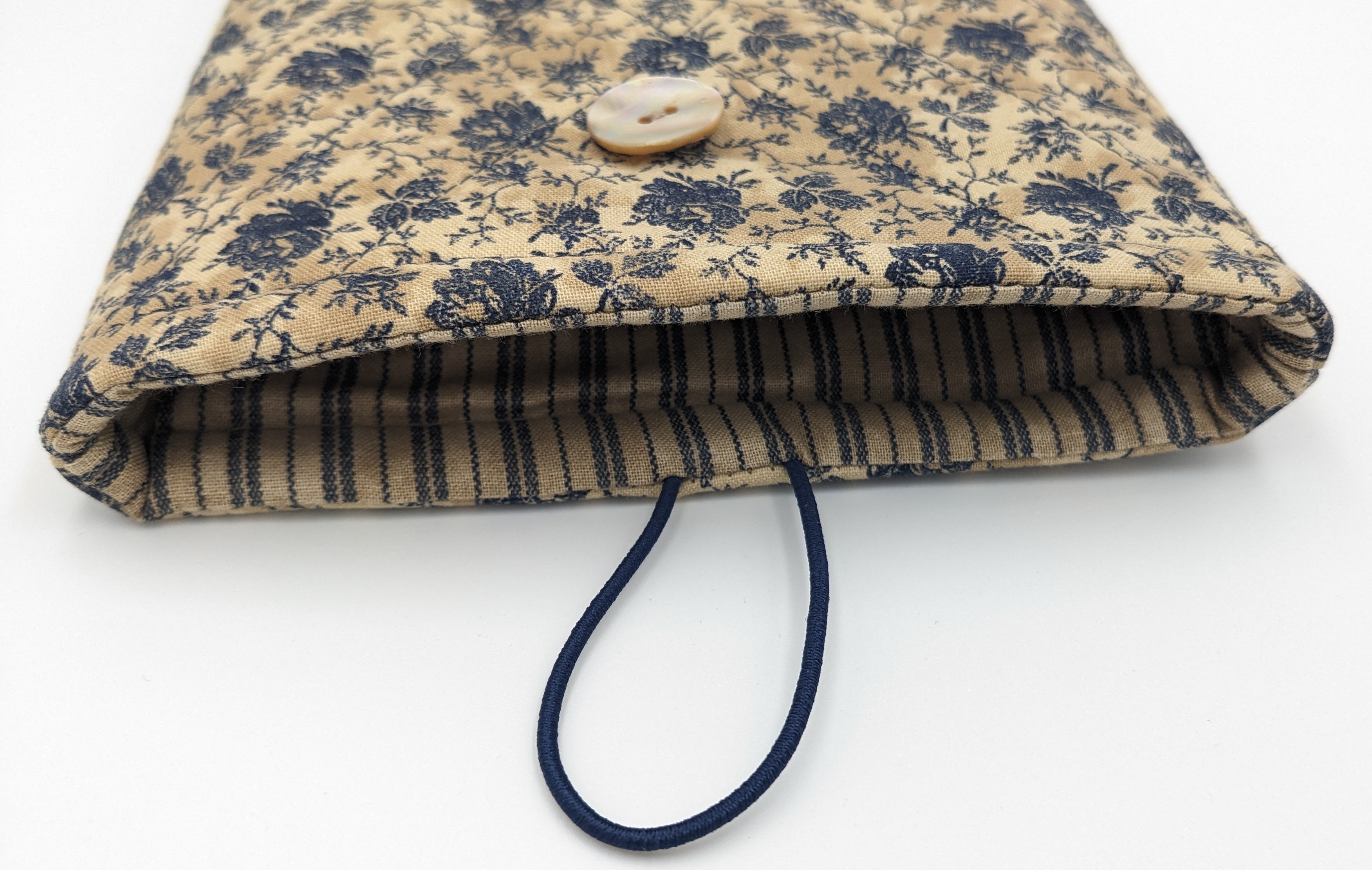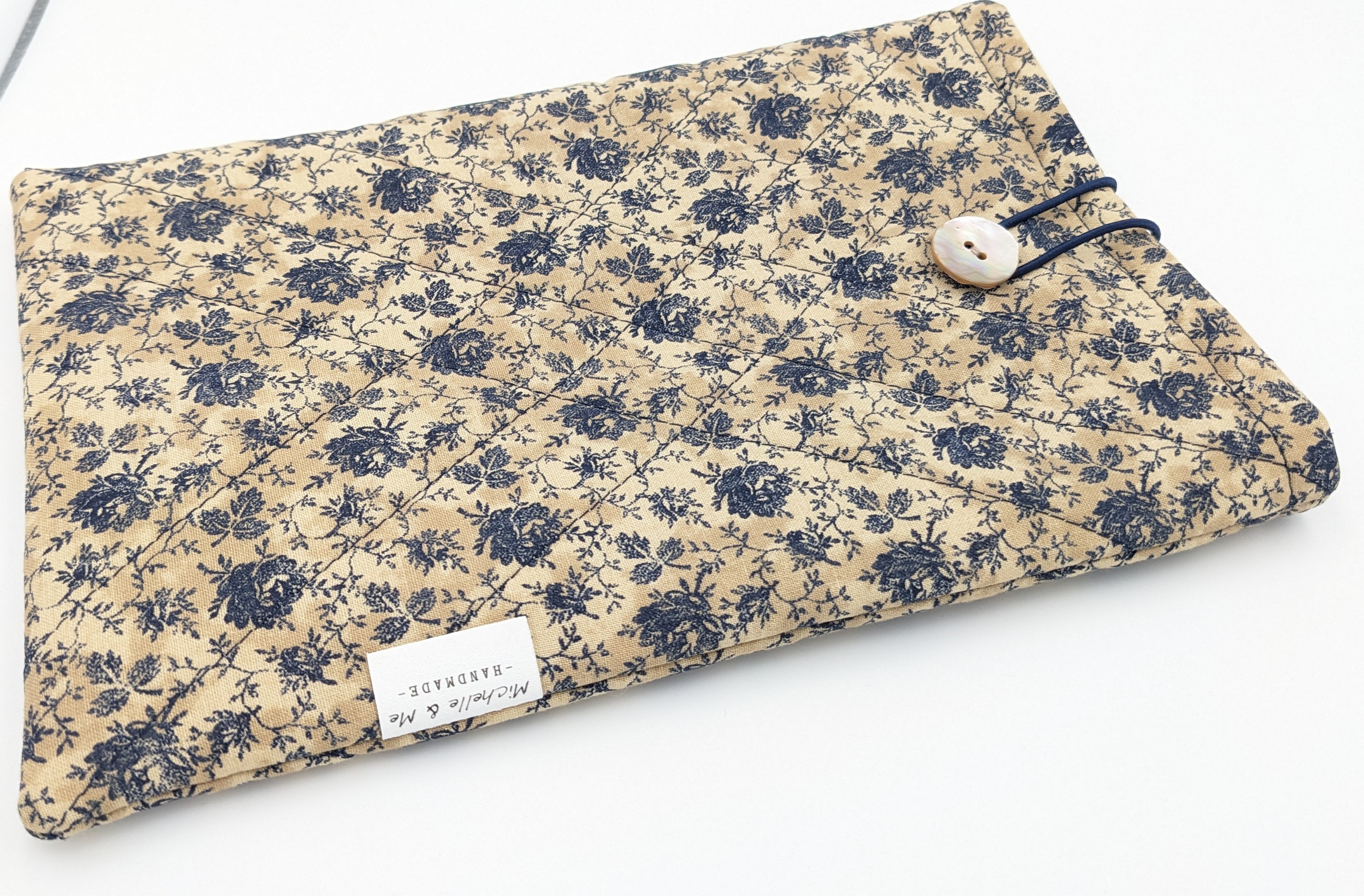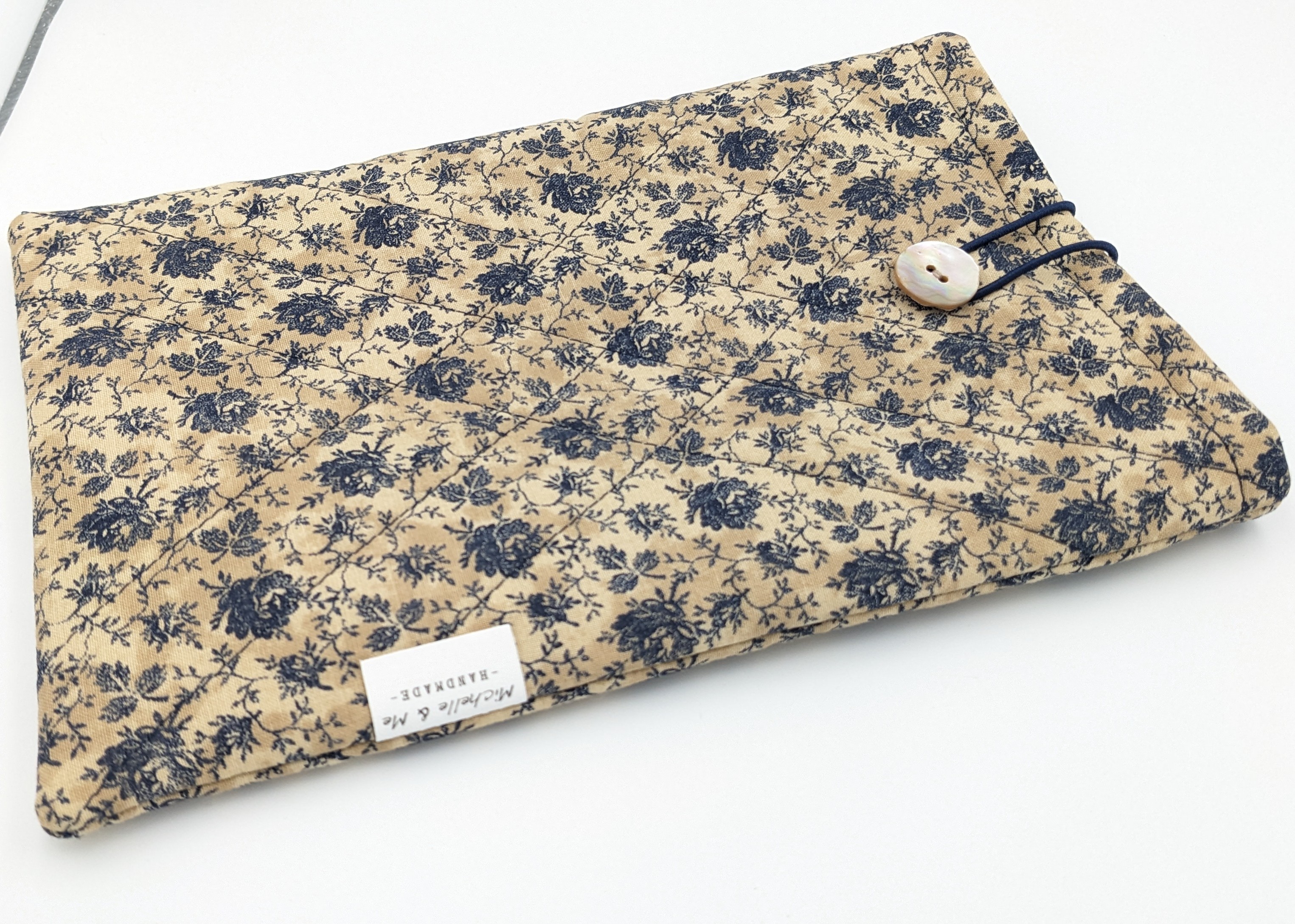 Quilted Small Book Sleeve in Tea-Stained Navy Floral Cotton