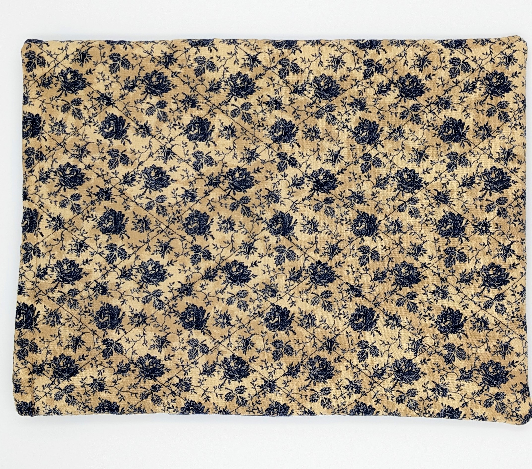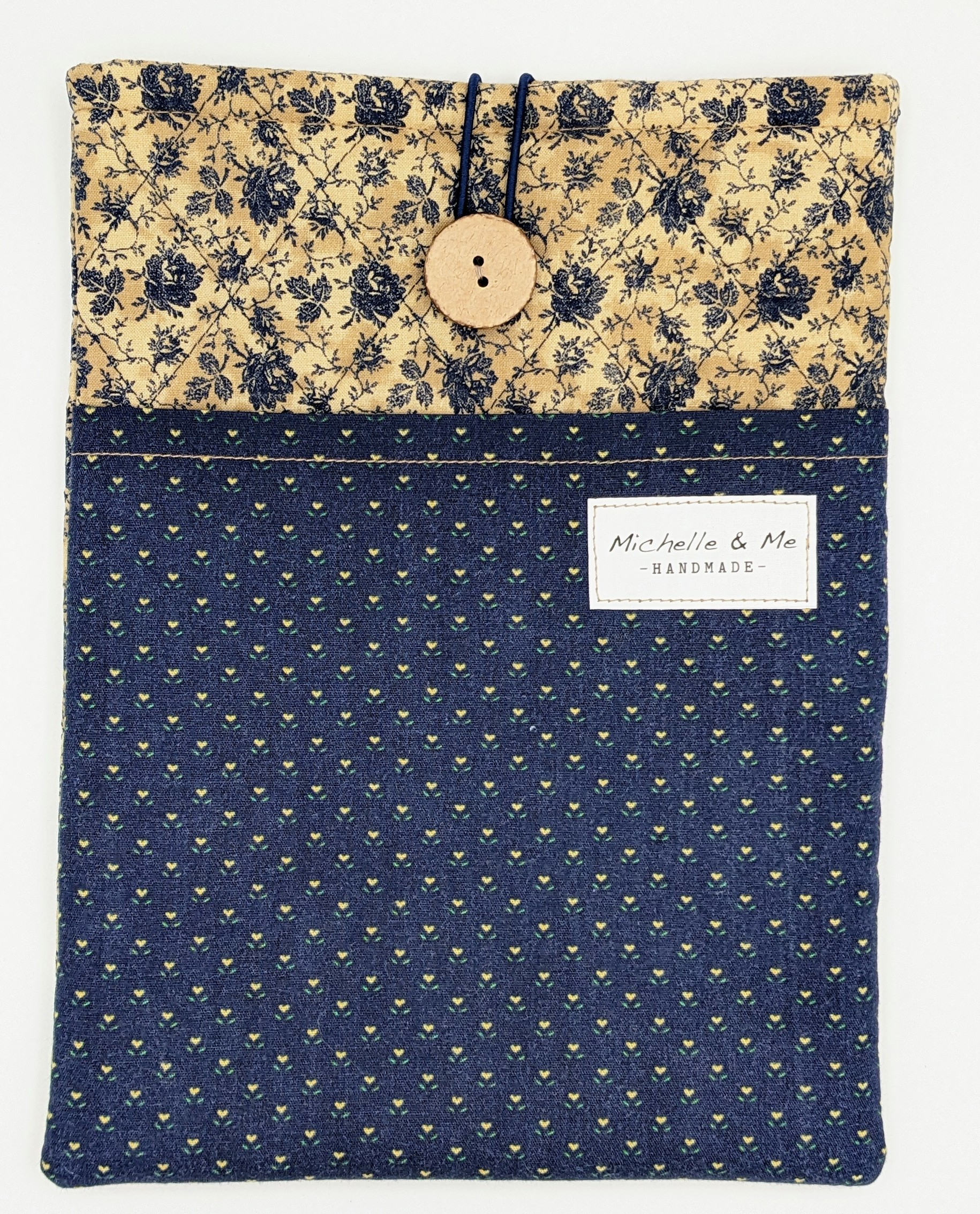 Navy Floral Quilted Medium Book Sleeve with Pocket