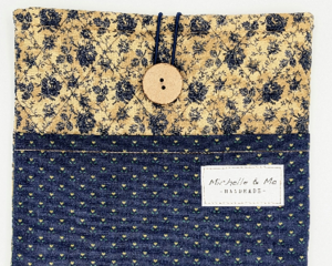 Quilted Cottage Book Sleeve with Front Pocket in size Medium
